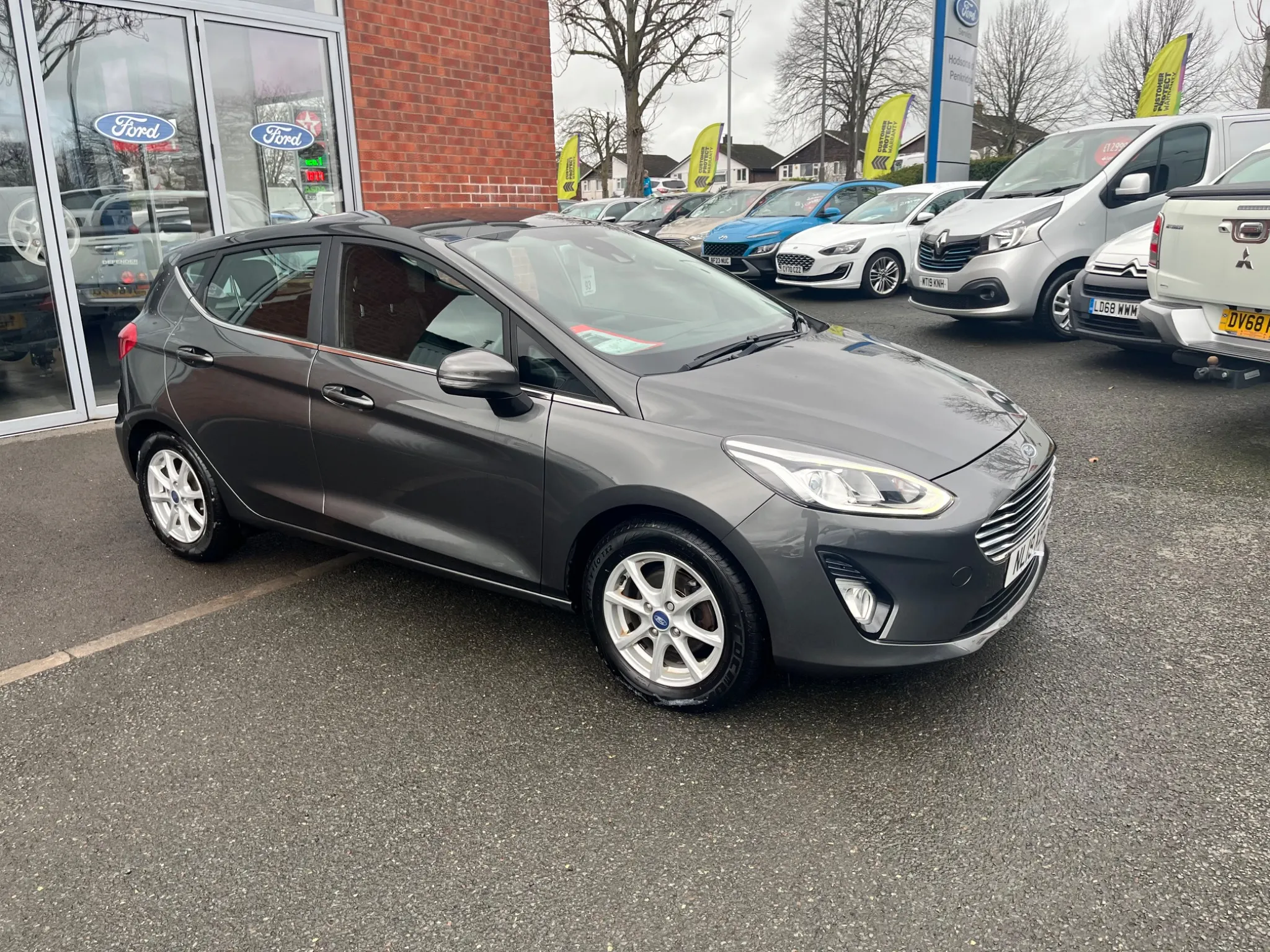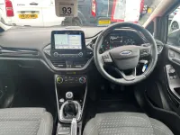 This 2018 Ford Fiesta Ti-VCT Zetec is a great choice for those seeking an economical and well equipped car. It features a 1.1 litre petrol engine and meets Euro 6 emissions standards. Inside, you'll find manual air conditioning for your comfort, and automatic headlights that switch on and off as needed, which are also part of the NCAP safety pack. Entertainment and connectivity are handled by the Ford DAB radio with Ford SYNC3, offering seamless integration with Apple CarPlay and Android Auto.