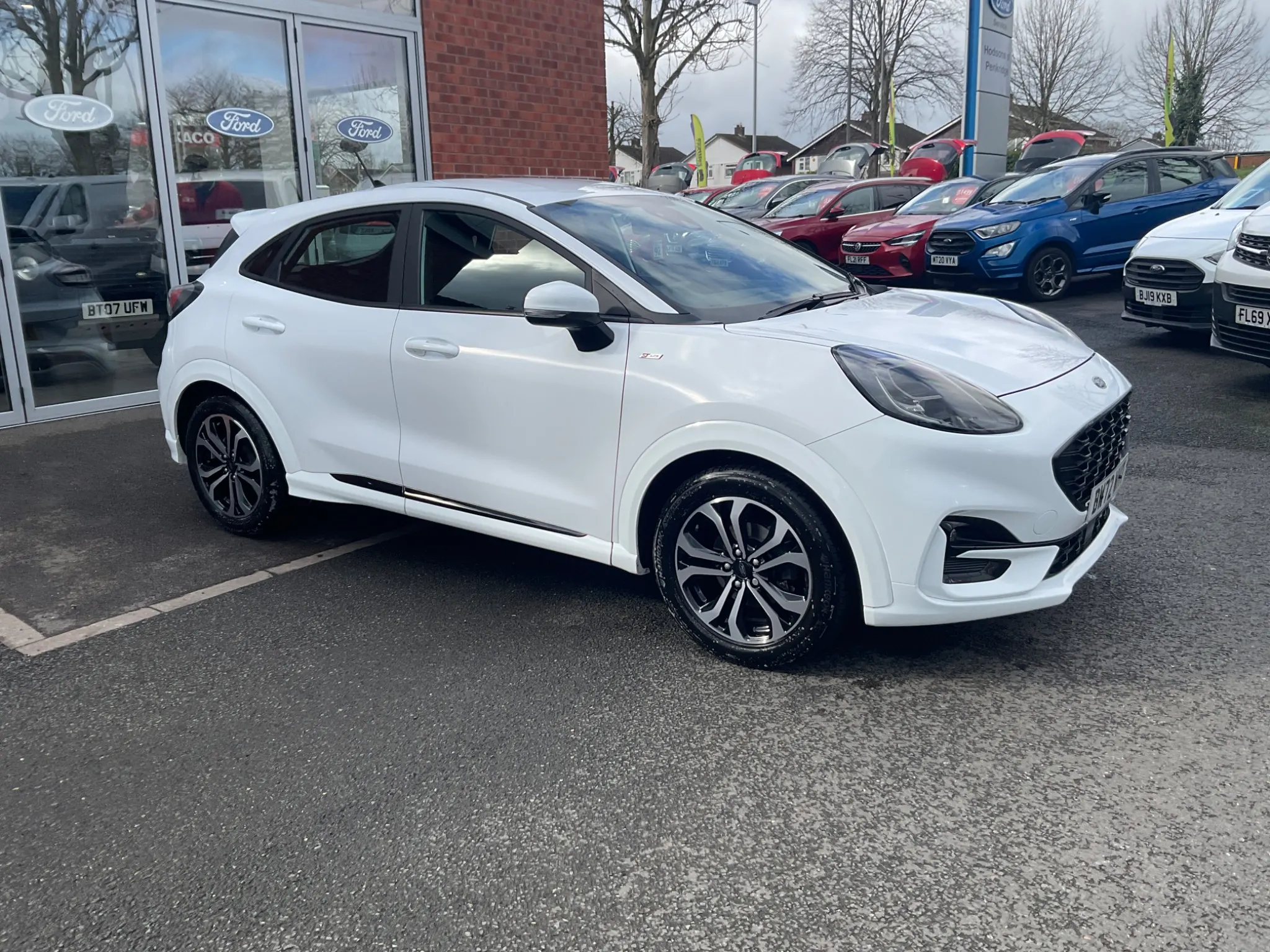 This 2023 Ford Puma ST-Line offers the peace of mind that comes with having had only one owner from new. This stylish compact SUV is powered by an efficient 1.0L Petrol Hybrid engine, meeting Euro 6 emission standards. Inside, you'll find the user friendly Ford SYNC 3 Navigation system, complete with Android Auto, Apple CarPlay, and Bluetooth connectivity for seamless integration of your devices. For added convenience and safety, it includes rear parking sensors with parking assistance, and manual air conditioning to keep you comfortable on every journey.