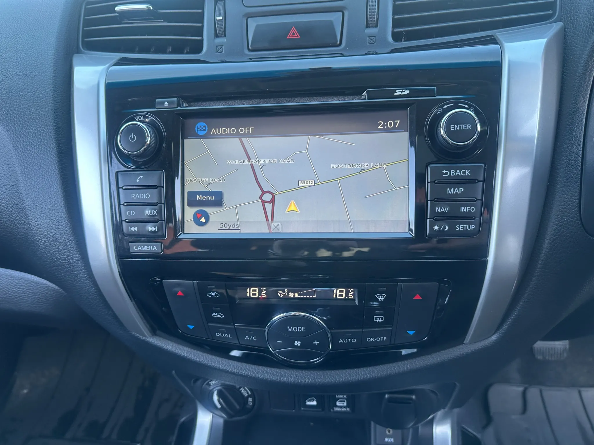 This 2017 Nissan Navara 2.3 dCi Tekna Pickup Double Cab 4dr Diesel Manual 4WD is an exceptional find with remarkably low mileage for its age, having covered just 39,000 miles. As a Euro 6 compliant model, it features a robust 2.3 litre diesel engine paired with a manual four wheel drive transmission, offering dependable performance. The Tekna trim level ensures a well equipped experience, including automatic headlights with a follow me home function, keyless entry via the Nissan Intelligent Key, and a comprehensive suite of parking assistance features. These include a colour reversing camera, rear parking sensors, and an Around View Monitor providing a 360 bird's eye view, making manoeuvring and parking straightforward.