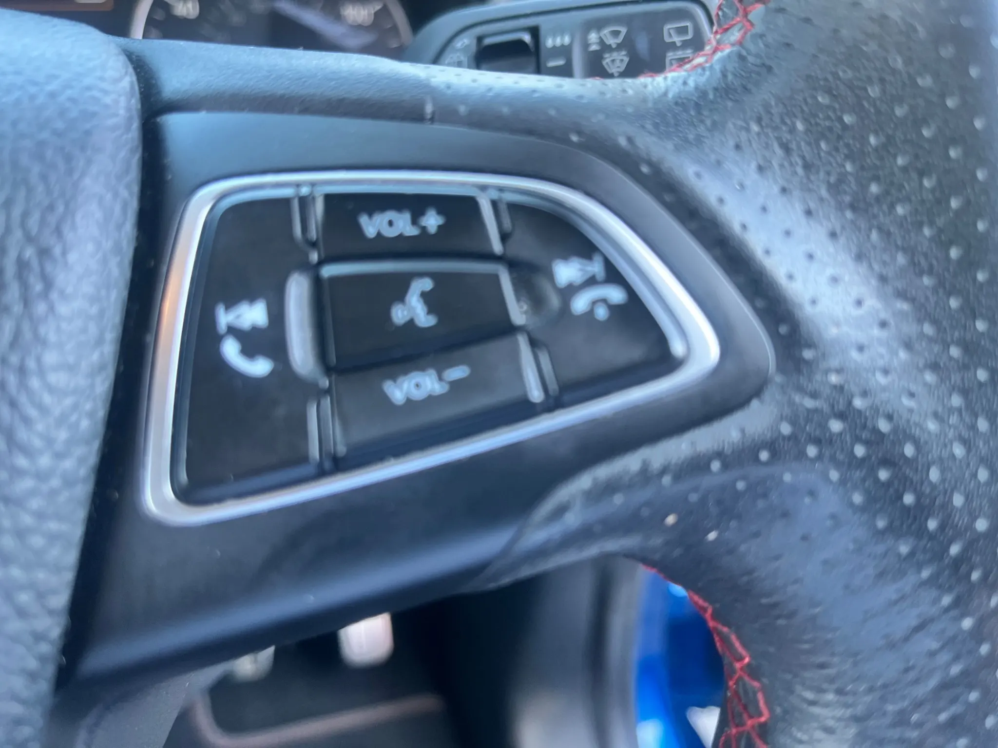 Steering Wheel - Perforated Leather-Trimmed with Chrome Inserts and Red Stitching