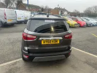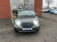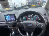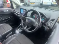 This 2019 Ford EcoSport T Titanium presents an exceptional opportunity with its remarkably low mileage of just 37,000 miles for its age. This Euro 6 compliant 1.0L petrol model offers a refined driving experience, enhanced by the Titanium trim. You'll appreciate the convenience of automatic headlights, which illuminate automatically when needed, and the integrated Ford SYNC 3 navigation system featuring an 8 inch touchscreen. This system seamlessly connects with your smartphone through Android Auto and Apple CarPlay, and also offers Bluetooth connectivity for calls and music. For added comfort, the electronic automatic temperature control ensures a pleasant cabin environment.