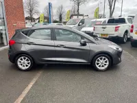 This 2018 Ford Fiesta Ti-VCT Zetec is a great choice for those seeking an economical and well equipped car. It features a 1.1 litre petrol engine and meets Euro 6 emissions standards. Inside, you'll find manual air conditioning for your comfort, and automatic headlights that switch on and off as needed, which are also part of the NCAP safety pack. Entertainment and connectivity are handled by the Ford DAB radio with Ford SYNC3, offering seamless integration with Apple CarPlay and Android Auto.