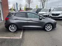 This 2020 Ford Fiesta T Titanium X offers an exceptional blend of style and technology. As a Euro 6 compliant model, it features a responsive 1.0 litre petrol engine and is presented in the desirable Titanium X trim. This particular vehicle comes equipped with a host of notable features designed to enhance your driving experience, including convenient wireless charging for your devices, a comprehensive NCAP pack with automatic headlights, and a premium B and O PLAY sound system integrated with Ford SYNC 3 navigation and FordPass Connect. You'll also appreciate the ease of rear parking distance sensors and the comfort of electronic automatic air conditioning.